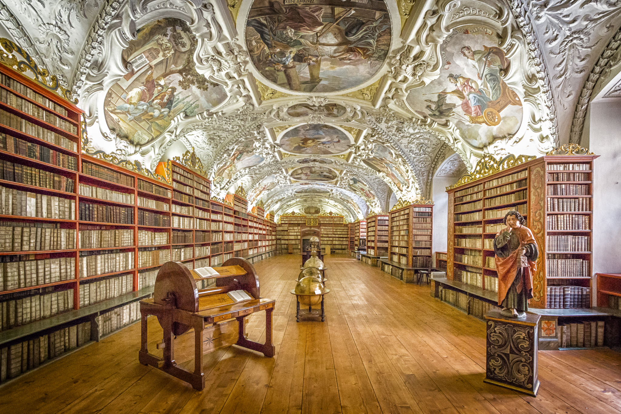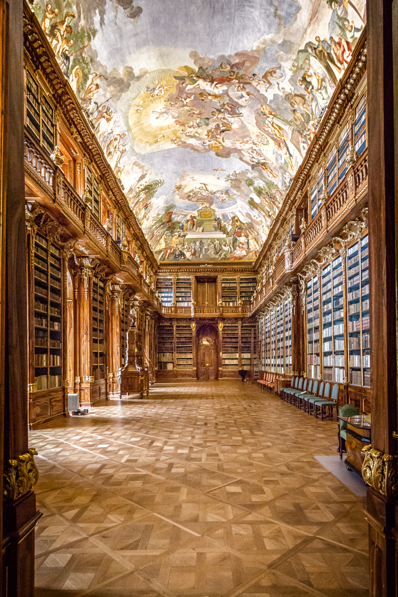Der längste Fußmarsch durch Prag führte uns hinauf zum Kloster Strahov. Dort angekommen hüpfte mein Herz nicht nur vor Freude über die tolle Aussicht, sondern auch vor Erschöpfung. Am Eintritt dann der nächste Schreck, nur 20 Minuten Zeit bis zur Mittagsschliessung. Also nix wie rein um endlich einen Blick in die spektakulären Bibliotheksräume werfen zu können. Nach etwas Schlange stehen, auffälligem Räuspern und einer ungeduldig auf die Uhr schauenden Angestellten konnte ich aber noch rechtzeitig vorm Rauswurf die Kamera und meine Nase in die Räume stecken. Beeindruckend!