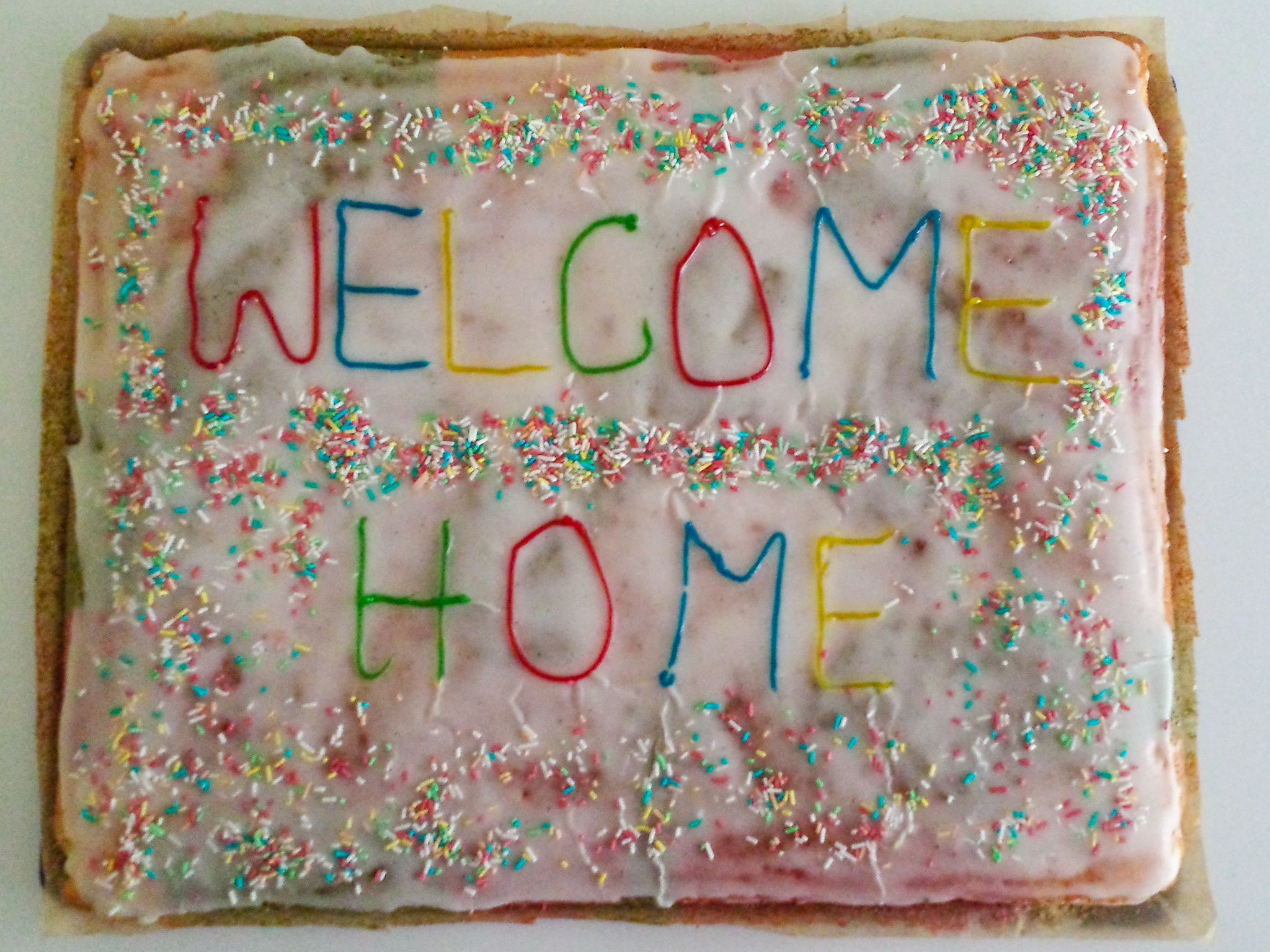 Vom letzten Tag gibts nicht viel zu berichten. Wir staunten über die ganzen Mauselöcher und Maulwurfshügel unter unseren Zelten und waren froh alles trocken verpackt und ins Auto bekommen zu haben. Nach knapp 5 Stunden Fahrt wartete dann daheim noch eine süße Überraschung in Form eines Willkommenskuchens auf uns Sechs. Danke Tina. 🙂
