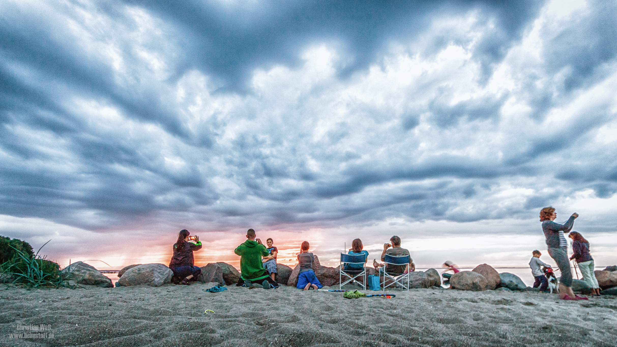 Nach einem Vormittag am Strand bei fast noch schönem Wetter gab es an Tag 10 unseres Urlaubs mal wieder einen Nachmittag auf dem Zeltplatz. Und selbstredend am Abend dann den Sonnenuntergang über dem Bodden. 😉