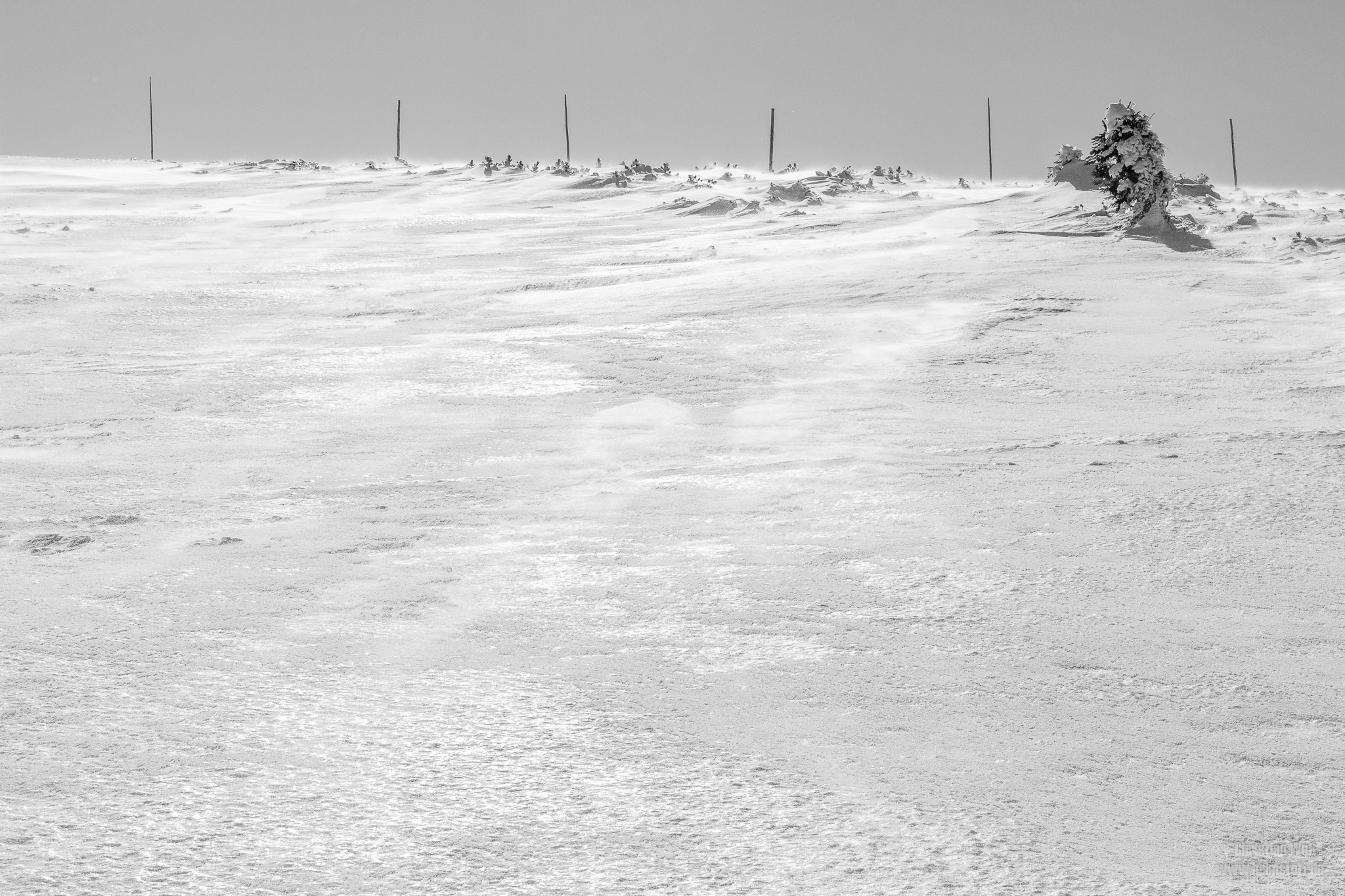 Nach einer grandiosen Kammwanderung (was für eine seltsame Landschaft da oben…) erreichten wir das ‚Schlesierhaus‚ am Fuße des Gipfels. Die Wege nach ganz oben bestanden zu unserem Entsetzen jedoch zu großen Teilen aus blankem Eis und obwohl alles in mir ‚Irrsinn‘ gerufen hat, ging es Schritt für Schritt (und mit dicken Wollsocken über den Schuhen) auf und neben den offiziellen Wegen, wie eine etwas zu fette Gemse, Richtung Ziel. (Die Tatsache dass wir einen ollen Holzschlitten dabei mitschleppten machte es nicht unbedingt angenehmer. 😉 ) Bis es dann endlich hieß: „GESCHAFFT!“ (Gesagt habe ich das allerdings nur in meinem Kopf, da mir schlicht die Luft fehlte um etwas anderes zu tun als nach eben dieser zu schnappen.)